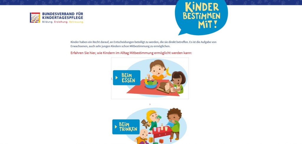 Kinder haben ein Recht darauf, an Entscheidungen beteiligt zu werden, die sie direkt betreffen. Es ist die Aufgabe von Erwachsenen, auch sehr jungen Kindern schon Mitbestimmung zu ermöglichen. Die Webseite gibt hilfreiche Tipps wie Kindern im Alltag Mitbestimmung ermöglicht werden kann.
