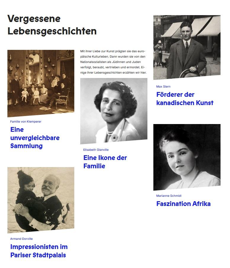 In dem Internetportal „Kunst, Raum und Rückgabe. Vergessene Lebensgeschichten“ können Lesende und Nutzer:innen Informationen erhalten über jüdische Künstler:innen und Kunstsammler:innen, die von den Nationalsozialist:innen verfolgt, beraubt, vertrieben und brutal ermordet wurden. Beleuchtet werden die Lebensgeschichten von der Familie Klemperer Elisabeth Glanville Max Stern und Marianne Schmidl Das Portal leistet einen wertvollen Beitrag gegen das Vergessen…