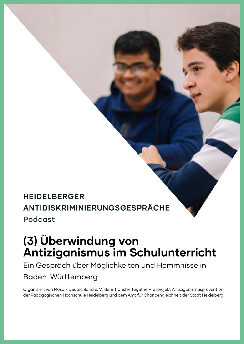 Im Kampf gegen Antiziganismus im Bildungskontext bemüht sich Baden-Württemberg um eine Vorreiterrolle. Es besteht ein massiver Nachholbedarf bezüglich der Behandlung des Themas im Unterricht, als auch bei der Weiterbildung von Lehrkräften zum Thema Antiziganismus. Hoffnungen machen hingegen Schulprojekte des Landesverbandes Deutscher Sinti und Roma, u. a. durch die direkte Begegnung mit Sinti:zze und Rom:nja. Renate Melis und Pfarrer Dr. Andreas Hoffmann-Richter geben in dem Podcast einen realistischen Einblick in die Möglichkeiten und Hemmnisse bei der Überwindung von Antiziganismus im Schulunterricht. Der Podcast ist im Rahmen der Heidelberger Antidiskriminierungsgespräche entstanden.